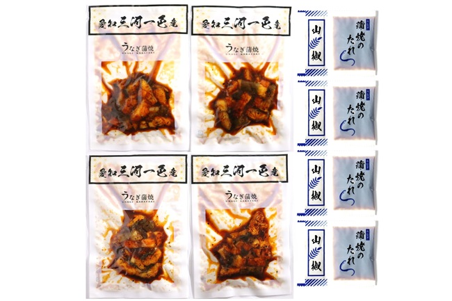 | 商品名 | 愛知三河一色産小分けきざみうなぎ蒲焼(4パック) |