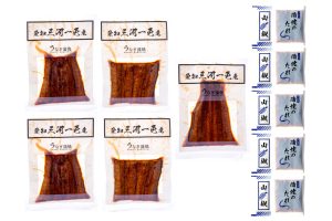 | 商品内容 | 愛知三河一色産うなぎ蒲焼 50g・山椒付たれ ×各5 |