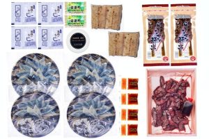 商品内容 | 【ふぐ刺身】国産とらふぐ(刺身15g・皮刺身10g)25g・ぽん酢もみじおろし×各4 【うなぎ白焼・肝串】愛知三河一色産うなぎ白焼50g・愛知三河一色産うなぎ肝串60g(2串)・本わさび×各2、山椒付たれ×4 【キャビア】国産熟成フレッシュキャビア4g 【ローストビーフ】神戸牛ローストビーフ(もも)スライス150g、ローストビーフソース |