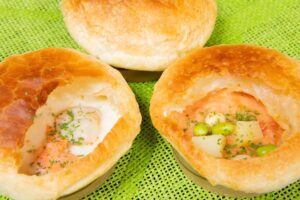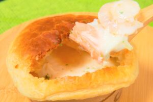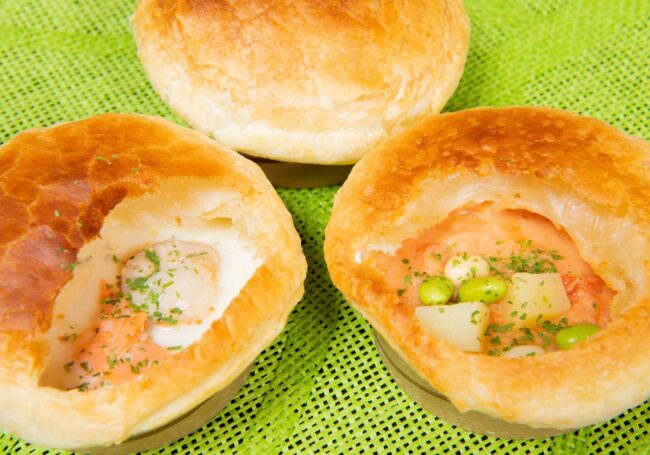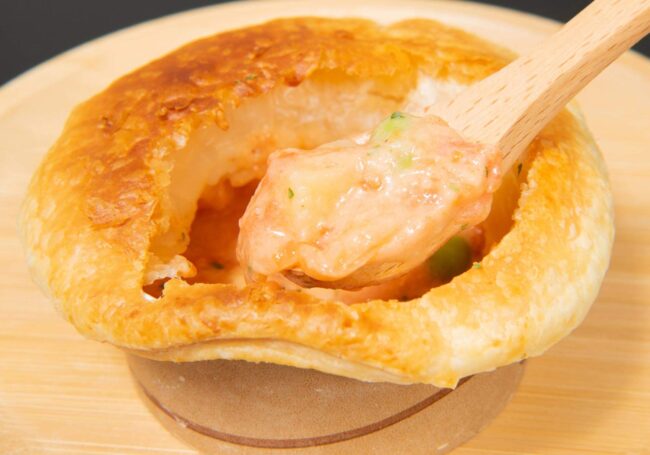 北海道産小麦・バター・塩・水のみを使用してつくったサクサクのパイ生地とともにお召し上がりください。
