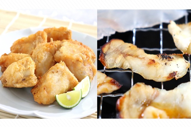 あら・切身に衣をまぶした【唐揚げ用】と、スライス状の【焼ふぐ用】をセットにしてお届け。【唐揚げ用】は冷凍のまま3分程度揚げて、【焼ふぐ用】は解凍しさっと火を通してお召し上がりください。天然とらふぐの凝縮された旨味をお楽しみいただけます。